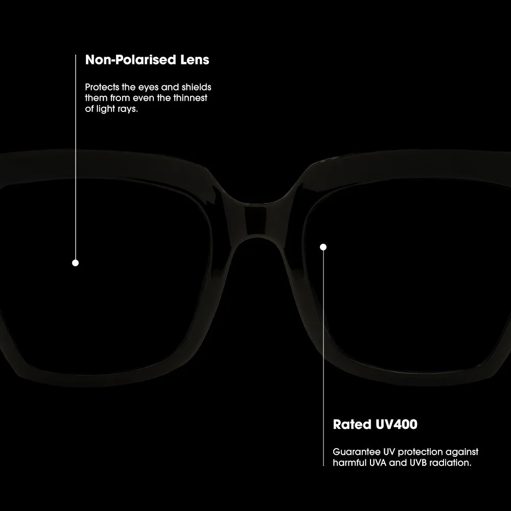 Our non-polarised lenses protect the eyes and shield from even the thinnest of rays. They are rated UV400 and guarantee UV protection against harmful UVA and UVB radiation.